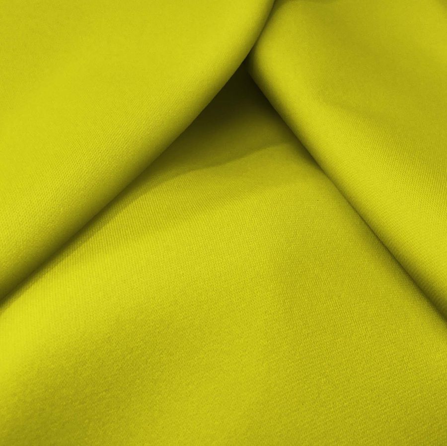 La tela base Sarga Bielástica - Lisboa es una sarga compuesta por un 97% de poliéster y un 3% de elastano, con un gramaje de 209 gr/m2 y un ancho de 150 cm. Su color liso impreso es Amarillo Plátano, que se crea utilizando una combinación de tinta cian (21), tinta magenta (6), tinta amarilla (94) y tinta negra (0), con un valor CMYK de 21 6 94 0. Este color secundario es un tono amarillo vivo y luminoso, que representa la energía, el optimismo y la creatividad. Combina especialmente bien con tonos neutros como grises y beige, pero también con colores fuertes como el azul o el verde.