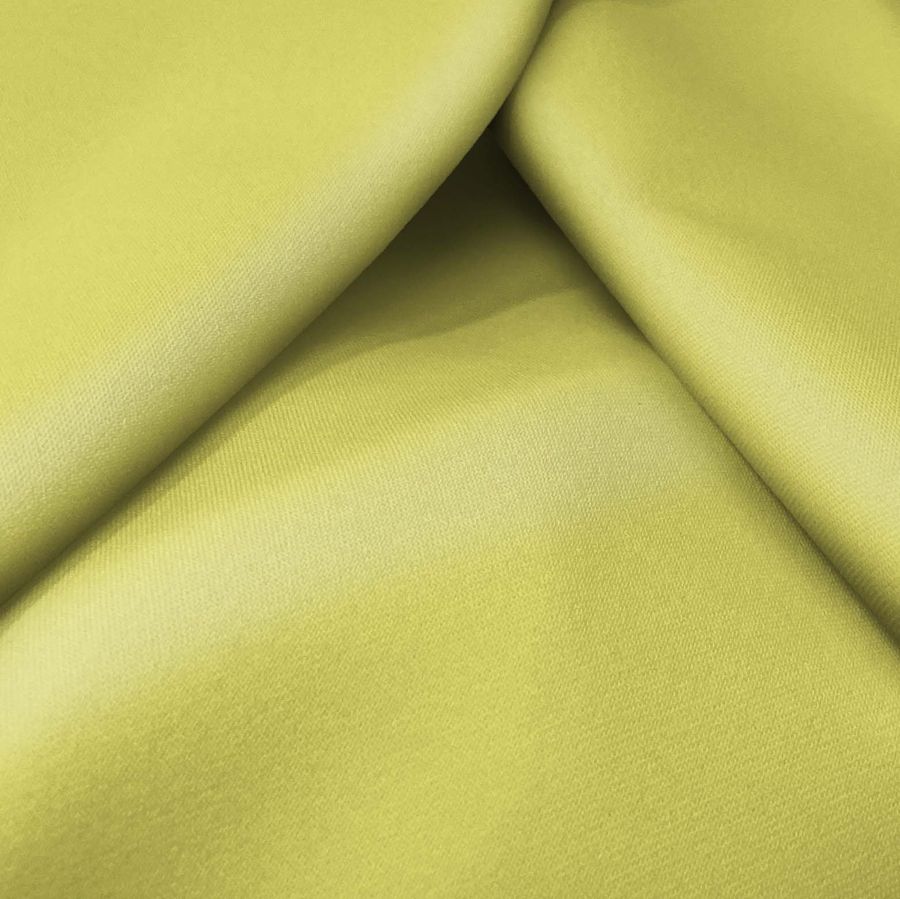 La tela base, Sarga Bielástica - Lisboa, se compone en un 97% de poliéster y un 3% de elastano, lo que le otorga una textura rugosa pero elástica y suave al tacto. Con un gramaje de 209 gr/m2 y un ancho de 150 cm, está indicada para prendas como pantalones, faldas, jeans, shorts, entre otros, así como para decoración de interior y exterior. Este tejido es impreso con un color liso a una sola cara por impresión digital textil, siendo el color amarillo plátano el escogido. El CMYK de este color se compone por un 13% de tinta cyan, un 1% de tinta magenta, un 70% de tinta yellow y un 0% de tinta black.