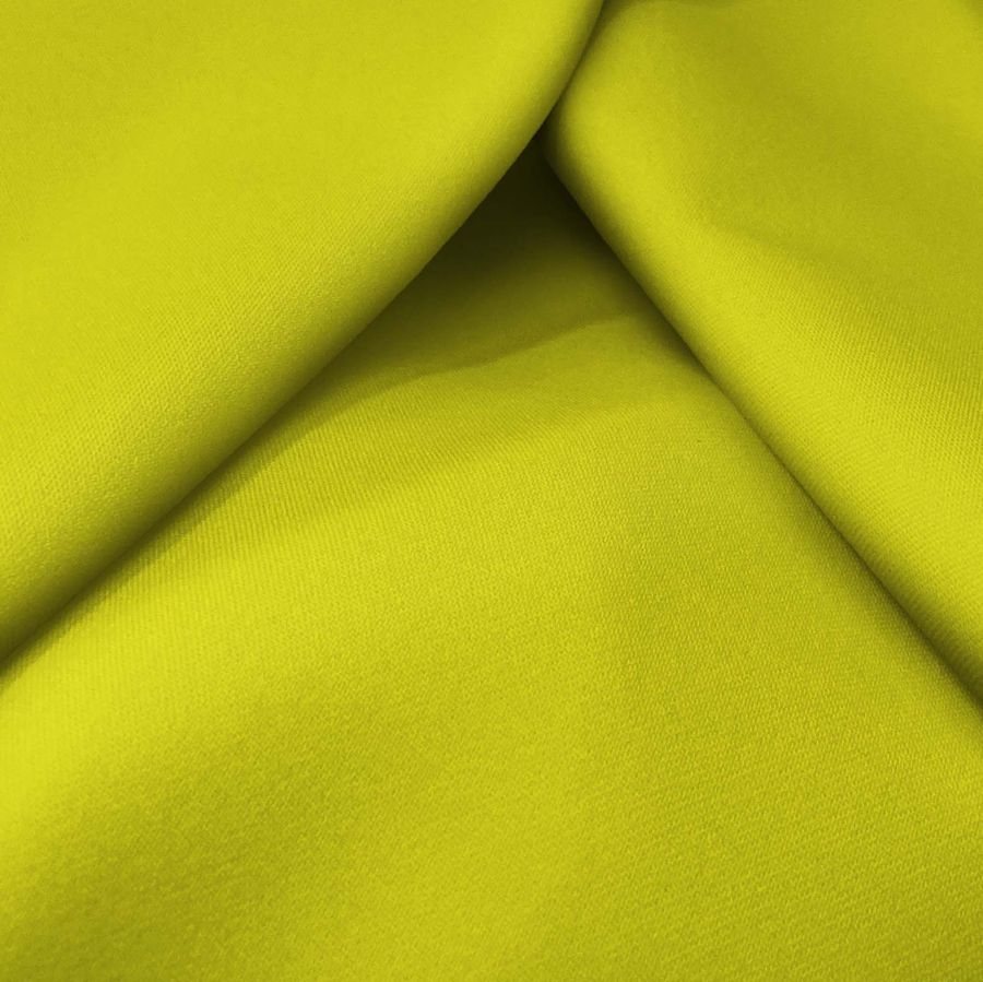 La tela base, Sarga Bielástica - Lisboa, es una tela de tipo sarga compuesta en un 97% de poliéster y un 3% de elastano, con un gramaje de 209 gr/m² y un ancho de 150 cm. Está impresa con un color liso, Verde Camaleón, cuyo CMYK es 23 4 94 0. Este color es un tono verde con tonalidades amarronadas que reflejan la variación de luz y que efectúan la función camaleónica. Combina especialmente bien con otros tonos terrosos y colores naturales.