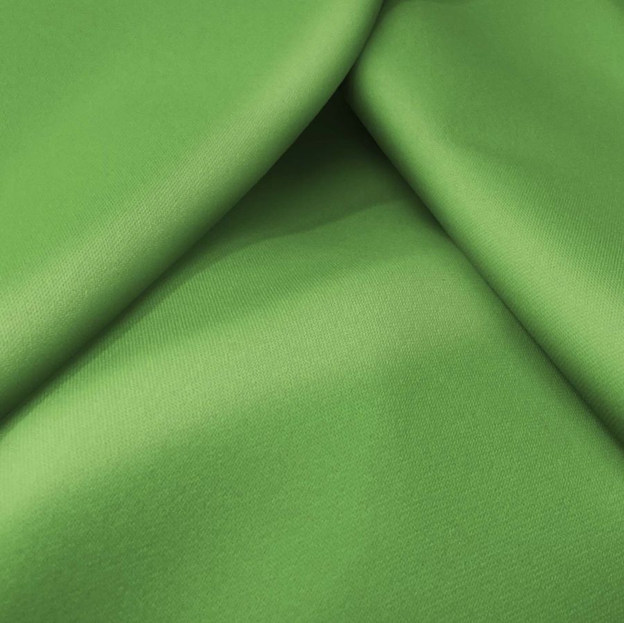 La tela base de este tejido es la Sarga Bielástica - Lisboa, compuesta por 97% de poliéster y 3% de elastano, con un gramaje de 209 gr/m2 y un ancho de 150 cm. El color liso impreso en esta tela es un verde alga, con un contenido de CMYK de 63 11 84 1. Este color evoca la naturaleza y el mar, y combina especialmente bien con tonos tierra, beige y marrón.