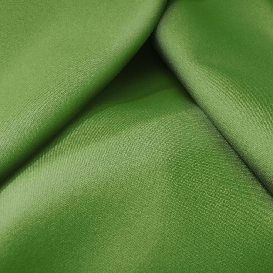 La tela base es la Sarga Bielástica - Lisboa, compuesta por un 97% de poliéster y un 3% de elastano. Su gramaje es de 209 gr/m2 y su ancho de 150 cm. El color liso impreso es de un tono verde oscuro, específicamente DarkOliveGreen, con un contenido de CMYK del 71/32/100/19 en tinta cyan, magenta, yellow y black respectivamente. Este color es simbólicamente asociado con la naturaleza, la estabilidad, la seguridad y la elegancia. La tela encaja muy bien con otros colores como el beige, el gris, el blanco, el negro, el marrón, el rosa claro y el amarillo suave.