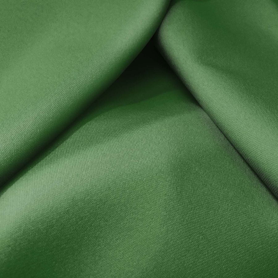 La tela base de este tejido es la Sarga Bielástica - Lisboa, con una composición de 97% poliéster y 3% elastano, un gramaje de 209 gr/m2 y un ancho de 150 cm. El color liso impreso es un verde alga, que se forma con una combinación de 78% de tinta cyan, 37% de tinta magenta, 91% de tinta yellow y 31% de tinta black, según el CMYK 78 37 91 31. Este color evoca la naturaleza, la tranquilidad y la calma. Combina muy bien con otros tonos verdes y naturales, así como con marrones y tierras.