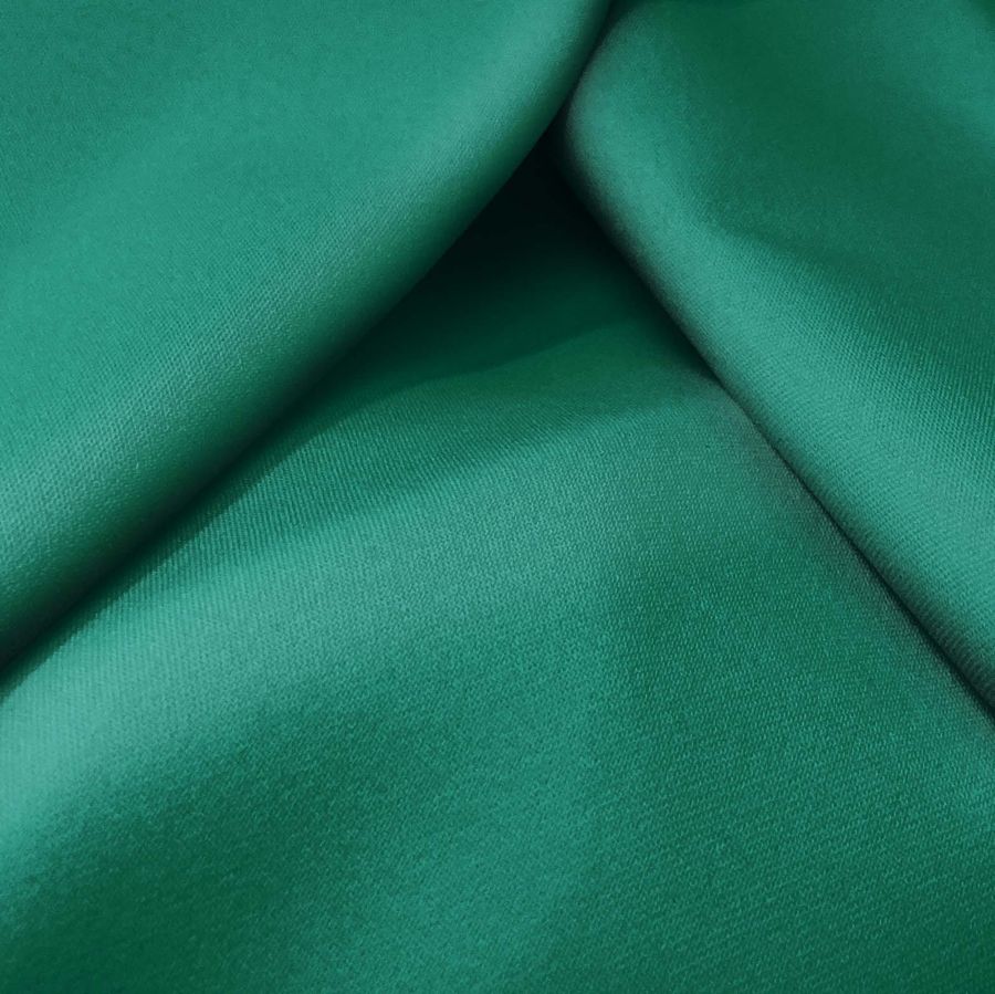 La tela base, Sarga Bielástica - Lisboa, tiene una composición de 97% poliéster y 3% elastano, con un gramaje de 209 gr/m2 y un ancho de 150 cm. Se presenta en color verde mar profundo, reflejando en su CMYK la mezcla de tintas Cyan: 89, Magenta: 33, Yellow: 69 y Black: 26. Este color simboliza la calma y la serenidad, y técnica mente se presenta con una textura suave, elástica y rugosa. Además, el verde mar profundo combina perfectamente con tonos tierra y azulados, otorgando versatilidad a sus aplicaciones. La tela está impresa con el color liso a una sola cara por impresión digital textil y no es un tejido tintado sino impreso por una sola cara.