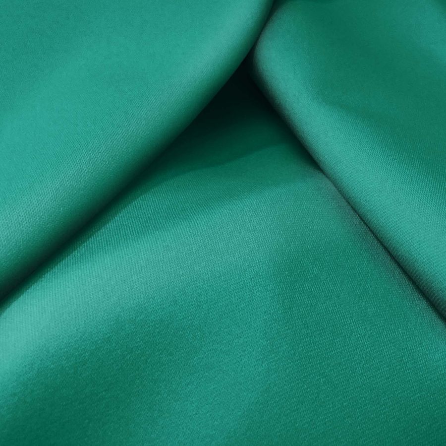 En lo que respecta a las características generales de la tela base y su color liso, la textura es rugosa, elástica y suave al tacto, lo cual la hace perfecta para prendas cómodas y duraderas. Además, la sarga es un tipo de tela reconocida por su resistencia y flexibilidad, gracias a su tejido de diagonal que proporciona una gran estabilidad. Por otro lado, el verde menta oscuro es un color muy versátil, que puede utilizarse tanto en prendas de vestir como en decoración de interiores, creando un ambiente fresco y relajante.