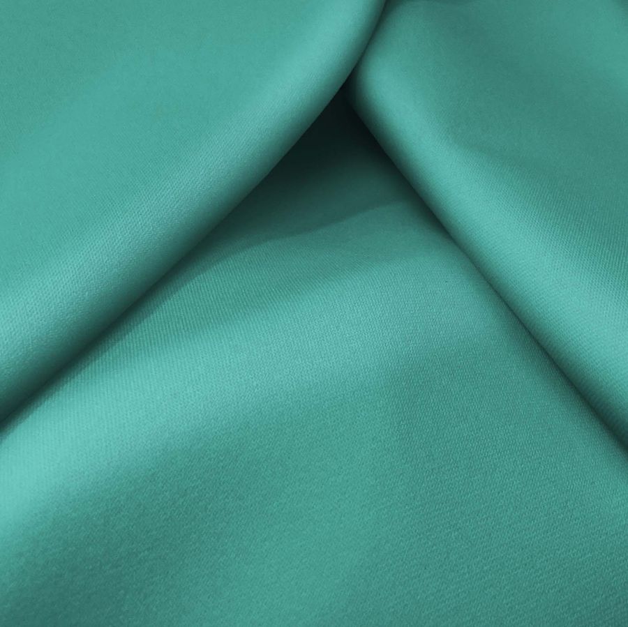 La tela base, Sarga Bielástica-Lisboa, es una tela de composición 97% poliéster y 3% elastano, con gramaje de 209 gr/m2 y ancho de tela de 150 cm. Su color liso impreso, Espuma de Mar Verde, posee un CMYK de 71, 15, 47 y 2. Este color evoca la tranquilidad de un mar calmado y suavidad de la espuma blanca en la orilla de la playa. El verde claro subraya la relajación y la armonía, mientras que el blanco logo el frescor y la pureza. Este color secundario combina muy bien con colores como el blanco, el beige, el gris claro y el azul claro. Es importante destacar que el tejido está impreso con el color liso a una sola cara por impresión digital textil, lo que significa que no se trata de un tejido tintado, sino impreso por una sola cara.