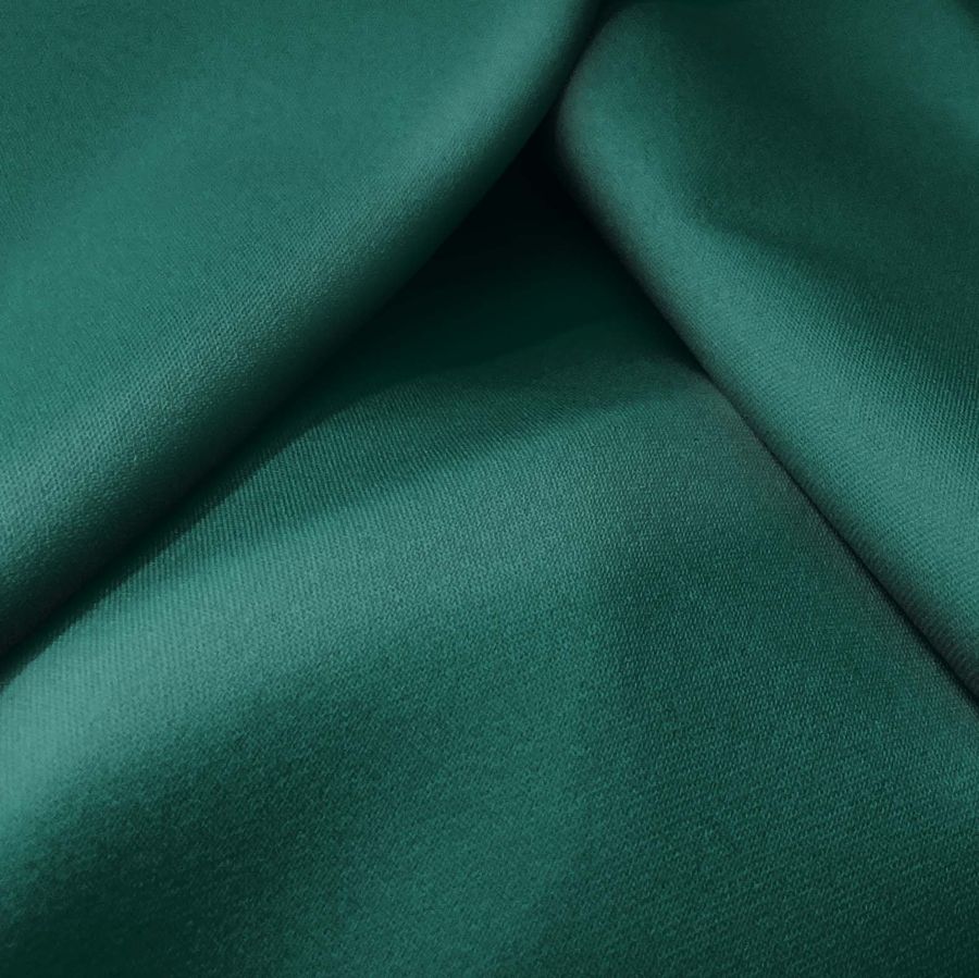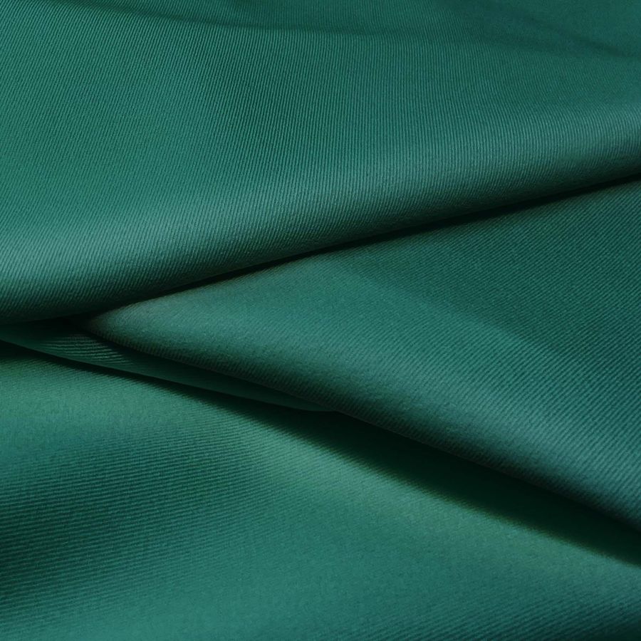 La tela base de esta prenda es la Sarga Bielástica - Lisboa, con una composición de 97% poliéster y 3% elastano, un gramaje de 209 g/m2 y un ancho de 150 cm. El color liso impreso es un Verde Teal Profundo, obtenido a través de una tecnología de sublimación. Este color simboliza serenidad, estabilidad y creatividad, y técnicamente se logra con la combinación de las tintas de cian (92), magenta (44), amarillo (69) y negro (54).