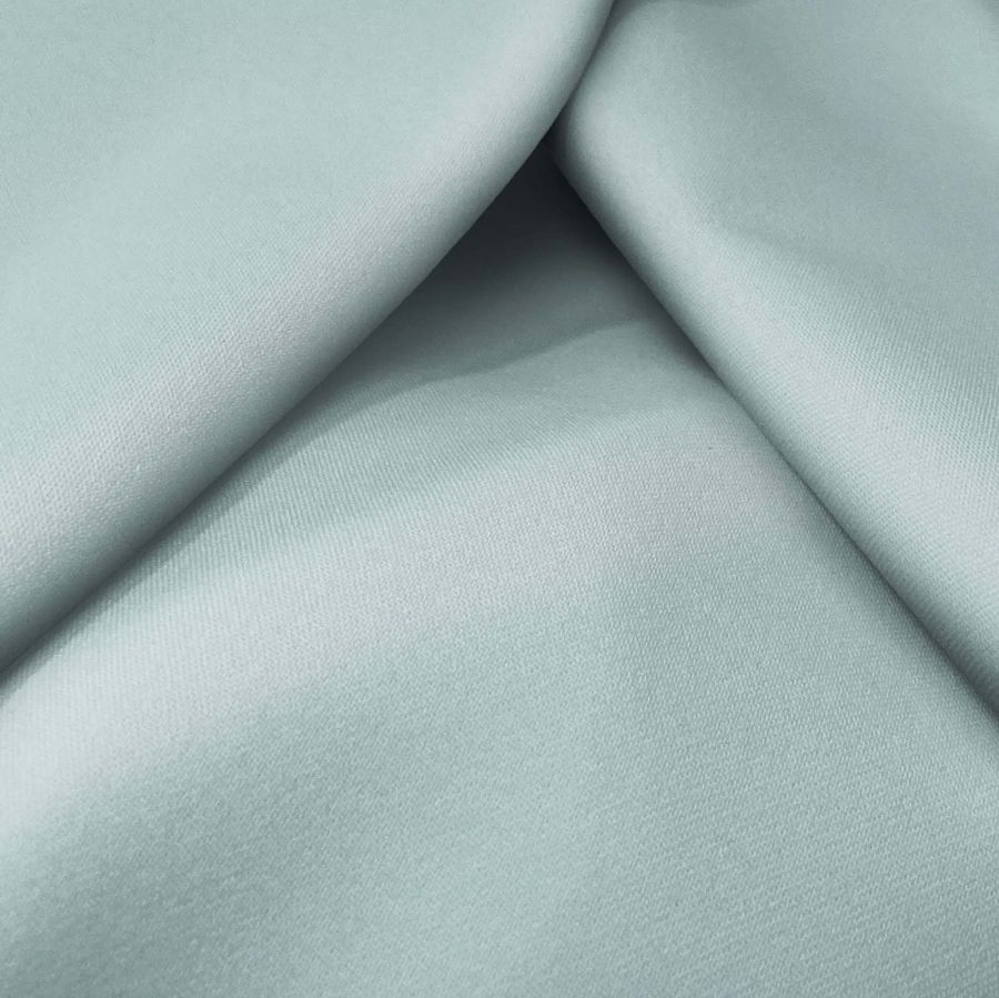 La tela base, Sarga Bielástica - Lisboa, tiene una composición de 97% poliéster y 3% elastano, lo que le proporciona una textura elástica y suave al tacto. El color liso impreso es Azul - PowderBlue, con un contenido de CMYK de 33 en Cyan, 5 en Magenta, 17 en Yellow y 0 en Black. Este color secundario es suave y relajante, y combina bien con tonalidades grises, rosas y menta.