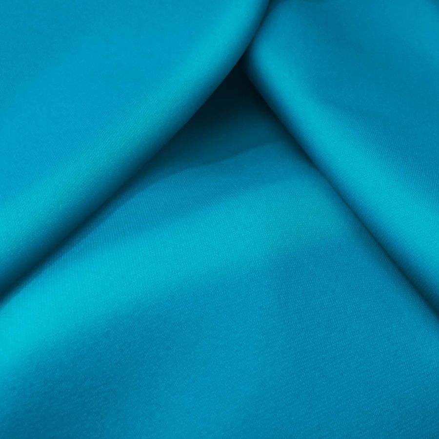La tela base de este tejido es una sarga bielástica llamada Lisboa, la cual está compuesta mayoritariamente por poliéster y elastano. Tiene un gramaje de 209 gr/m2 y un ancho de 150 cm. El color liso impreso es un azul intenso con tonalidades de hiedra azul, que se obtiene mediante el uso de tintas cian, magenta, amarilla y negra en una proporción de 80, 26, 12 y 1 respectivamente, con un CMYK de 80 26 12 1. Este color transmite sensaciones de profundidad, frescura y serenidad.