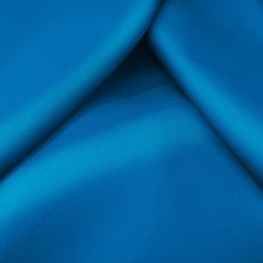 La tela base de este tejido es la Sarga Bielástica - Lisboa, compuesta por un 97% de poliéster y un 3% de elastano, con un gramaje de 209 gr/m2 y un ancho de 150 cm. El color liso impreso en esta tela es un Azul con tonalidad Ojos Azules, presentando un CMYK de 89 53 3 0. El color secundario que destaca en esta tonalidad es el Cyan, que simboliza la calma, la frescura y la claridad. Este color combina especialmente bien con tonalidades de Blanco, Gris y Verde Aguamarina, creando una combinación elegante y moderna. Es importante destacar que el tejido está impreso con el color liso a una sola cara por impresión digital textil, y no es un tejido tintado sino impreso por una sola cara.