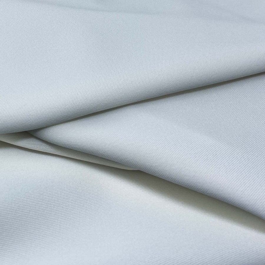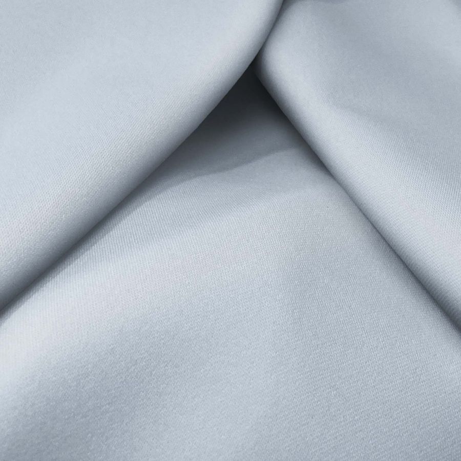 La Sarga Bielástica - Lisboa es una tela de composición 97% poliéster y 3% elastano que pesa 209 gr/m2 y mide 150 cm de ancho. Su nombre proviene de la técnica de tejido denominada sarga, que le otorga una textura rugosa pero a la vez elástica y suave al tacto. Respecto al color liso impreso, su contenido de CMYK es de 23% de cian, 7% de magenta, 2% de amarillo y 0% de negro, lo que se traduce en un tono azul-violeta claro. Este color secundario combina especialmente bien con tonalidades de rosa pastel e incluso grises cálidos.
