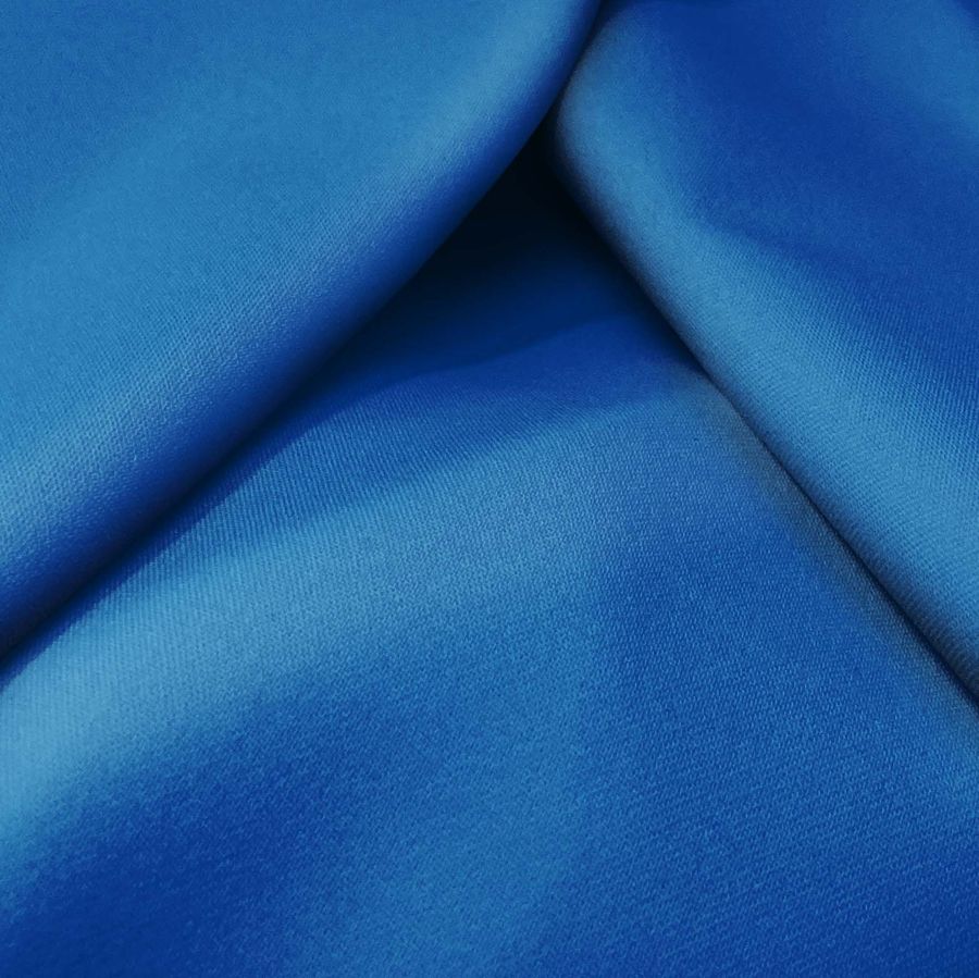 La tela base de este tejido es la Sarga Bielástica - Lisboa, compuesta por 97% de poliéster y 3% de elastano con un gramaje de 209 gr/m2 y un ancho de 150 cm. El color liso impreso es de un Azul arándano, con un CMYK de 98 71 11 1. Este color es simbólicamente representativo de la estabilidad emocional y la serenidad, al mismo tiempo que transmite fuerza. El Azul arándano combina bien con colores neutros como el gris y el beige, así como también con tonos más intensos, como el amarillo y el verde.
