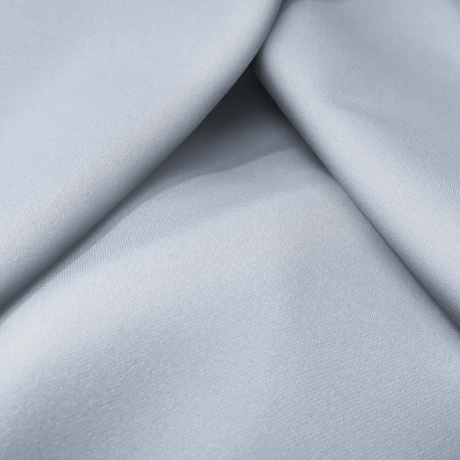 La tela base de este tejido es Sarga Bielástica - Lisboa, compuesta por 97% de poliéster y 3% de elastano, con un gramaje de 209 gr/m2 y un ancho de 150 cm. El color impreso es un Azul pastel con un CMYK de 24 9 2 0, lo que lo convierte en un tono suave y delicado que combina perfectamente con colores como el blanco, gris y marrón claro. Es importante destacar que la tela está impresa a una sola cara por impresión digital textil.