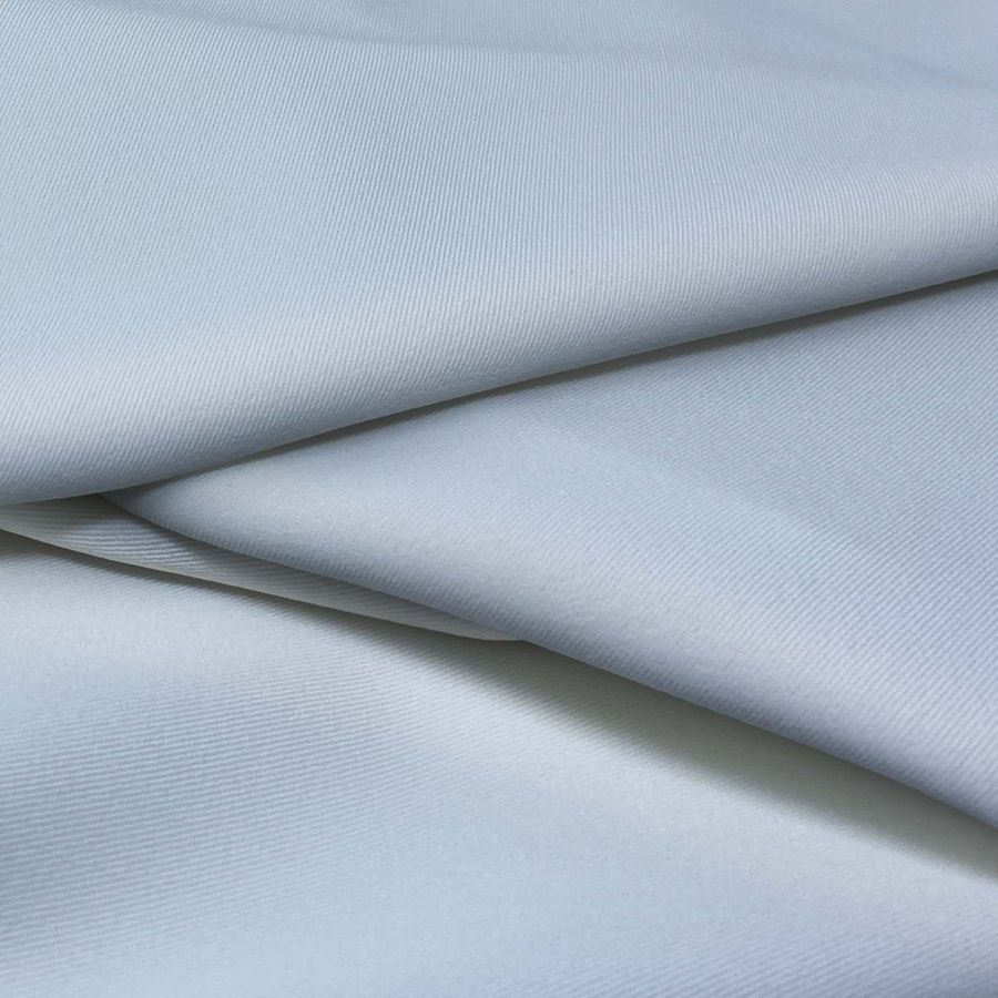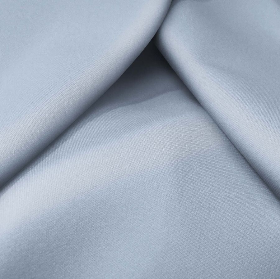 La tela base de este tejido es una Sarga Bielástica - Lisboa, compuesta por un 97% de poliéster y un 3% de elastano, con un gramaje de 209 gr/m2 y un ancho de 150 cm. El color liso impreso es un tono de azul llamado Angel Azul, cuyo CMYK es 34 16 3 0. Este color secundario transmite una sensación de serenidad y armonía, y combina bien con tonos complementarios como amarillos y naranjas o con colores neutros como el gris y el beige. La tela está impresa con el color liso a una sola cara mediante impresión digital textil.