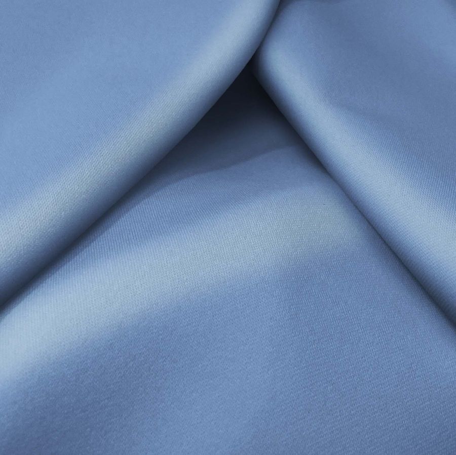 La tela base Sarga Bielástica - Lisboa presenta una composición de 97% POLIÉSTER y 3% ELASTANO, con un gramaje de 209 gr/m2 y un ancho de 150 cm. Su color liso impreso es Azul Violeta Claro, que se compone de las tintas Cyan, Magenta y Yellow en un 60, 38 y 4% respectivamente, y se caracteriza por una tonalidad fresca y suave. Este color combina particularmente bien con tonos beige y grises. La tela está impresa con el color liso a una sola cara por impresión digital textil.
