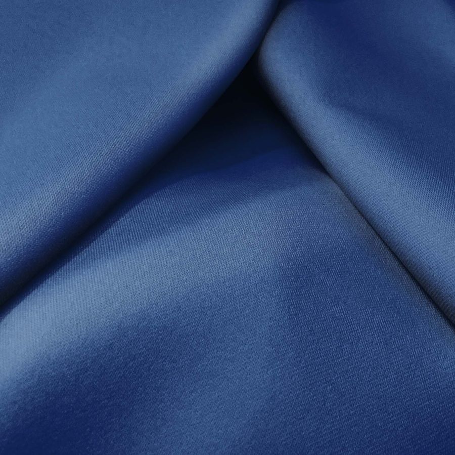 La Sarga Bielástica - Lisboa es una tela de 209 gr/m2 con una composición del 97% de poliéster y un 3% de elastano, un ancho de 150 cm y una apariencia rugosa y elástica al tacto. El color liso impreso es el Azul Tráfico, cuyo CMYK es 100 82 31 14. Este color secundario simboliza la fuerza, la estabilidad, la confianza y la comunicación. Además, complementa perfectamente con los tonos amarillos, naranjas y marrones. La tela está siempre impresa con el color liso a una sola cara por impresión digital textil.