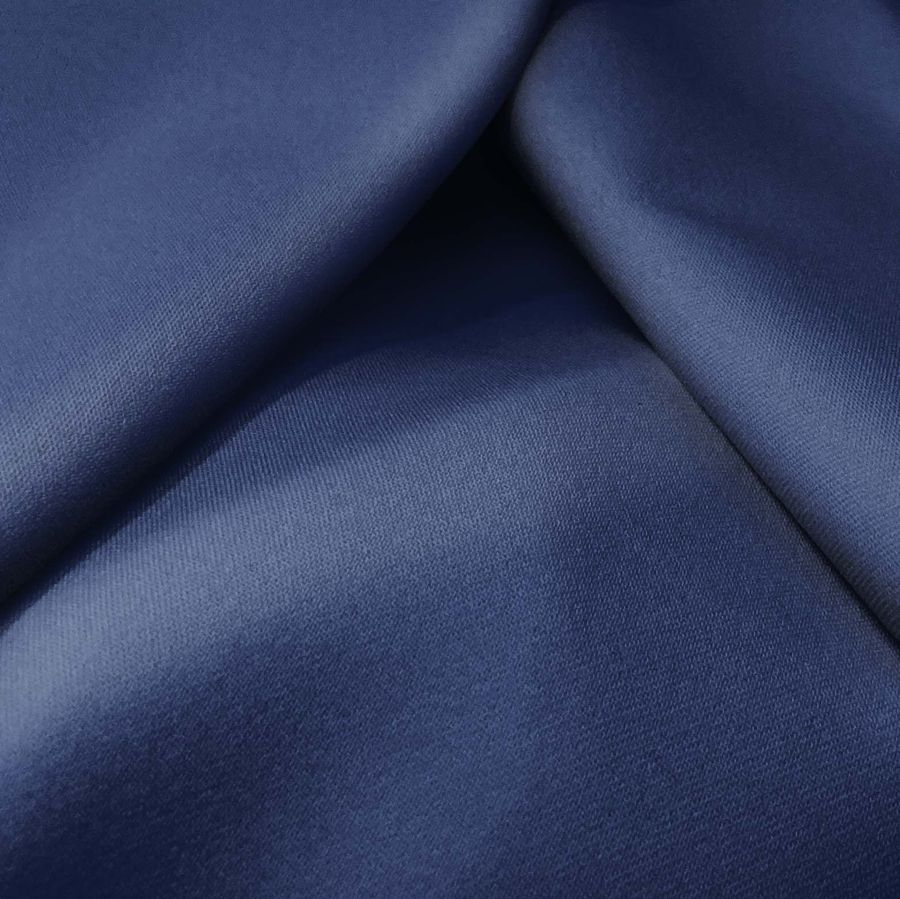 La tela base es la Sarga Bielástica - Lisboa, compuesta por 97% de poliéster y 3% de elastano, con un gramaje de 209 gr/m2 y un ancho de 150cm. La tela es de color liso impreso en azul pizarra oscura, con una composición de tinta CMYK de 100 de cian, 88 de magenta, 39 de amarillo y 33 de negro. Este color secundario representa la elegancia y sofisticación, y combina especialmente bien con tonos claros como el blanco, gris y verde claro.