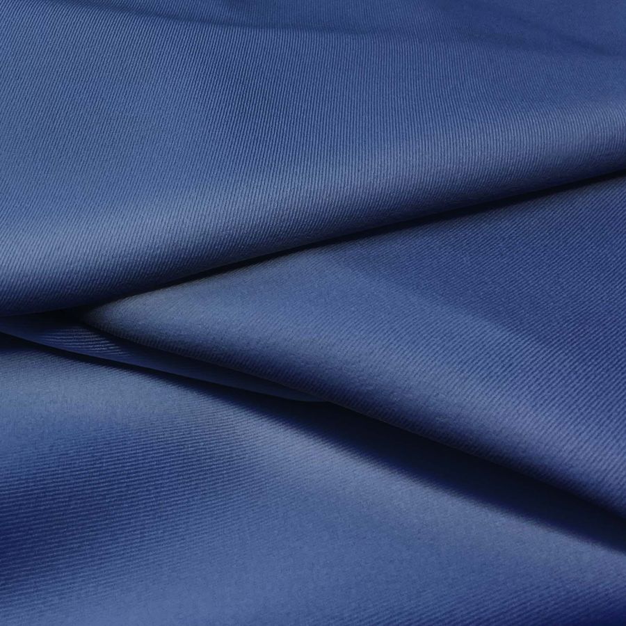 La tela base de este tejido es la Sarga Bielástica - Lisboa, compuesta por un 97% de poliéster y un 3% de elastano. Su gramaje es de 209 gr/m2 y tiene un ancho de 150 cm. El color liso impreso es un azul lapislázuli, resultado de la combinación de 100% de tinta cyan, 86% de tinta magenta, 32% de tinta yellow y 15% de tinta black, con un CMYK de 100 86 32 15. Este color secundario simboliza la paz y la serenidad, además de evocar el cielo y el agua pura. Se puede combinar con colores neutros como grises, blancos y negros, así como con tonos tierra y mostaza para añadir calidez.