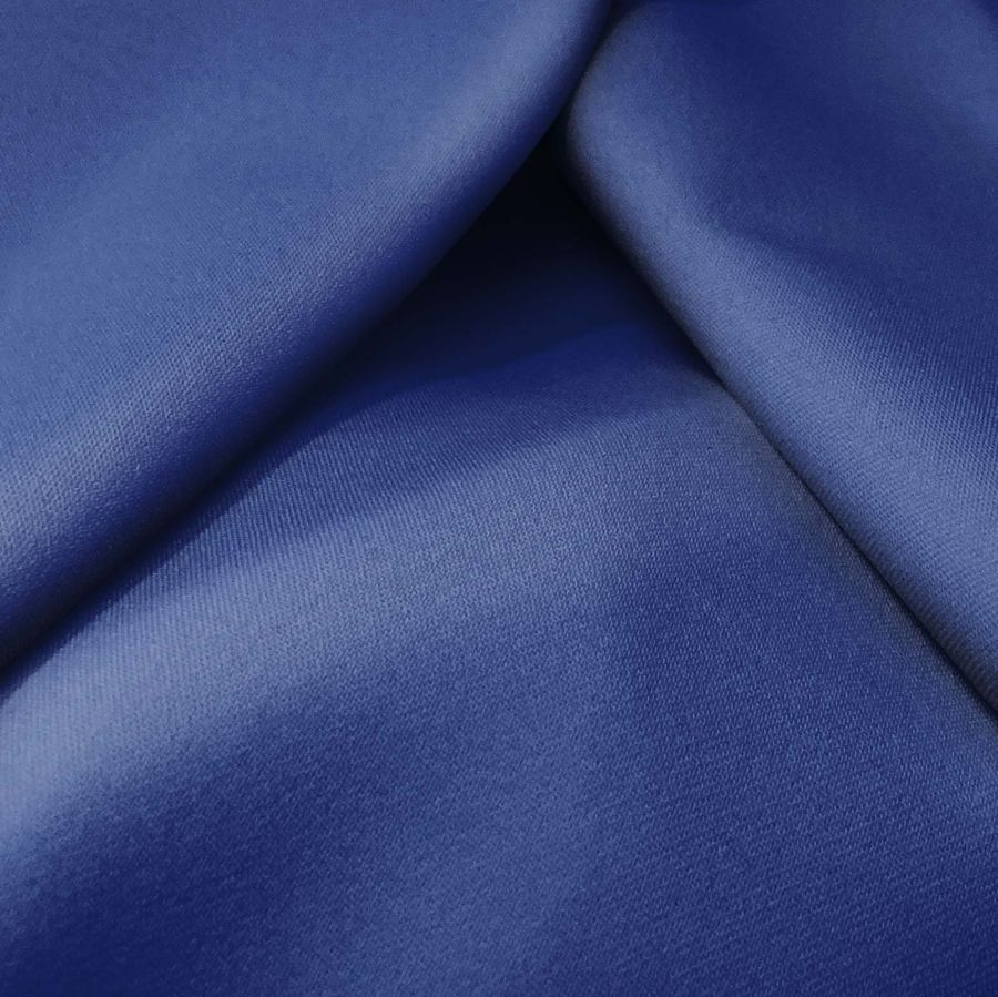 La tela base, Sarga Bielástica - Lisboa, está compuesta por un 97% de poliéster y un 3% de elastano, lo que le confiere una gran elasticidad. Su color liso impreso es un azul intenso, cercano al azul lapislázuli, con un CMYK de 100 87 27 8. Este color secundario es una tonalidad vibrante que aporta energía y vitalidad a cualquier prenda o elemento decorativo. Combina perfectamente con tonos neutros como el blanco, negro y gris, y también con colores más cálidos como el rosa o el rojo.
