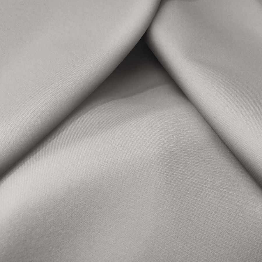 La tela base, Sarga Bielástica - Lisboa, es un tejido de sarga compuesto por un 97% de poliéster y un 3% de elastano, con un gramaje de 209 gr/m2 y un ancho de 150 cm. El color liso impreso es de un tono Gris Plata pálido, con un CMYK de 28 25 27 4. Este color es elegante, sofisticado y transmite sensación de modernidad y estilo refinado. Combina con otros grises, negro, blanco y tonos pastel.