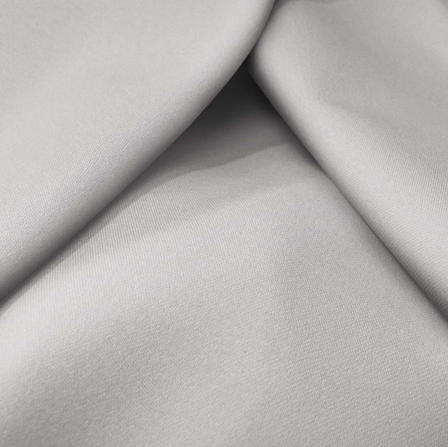 La tela base, Sarga Bielástica - Lisboa, está compuesta por un 97% de poliéster y un 3% de elastano, tiene un gramaje de 209 gr/m2 y un ancho de 150 cm. El color liso impreso es un Gris Ganso con un CMYK de 18 15 16 0. Este color se caracteriza por su elegancia y sobriedad, y combina perfectamente con tonos tierra y pasteles.