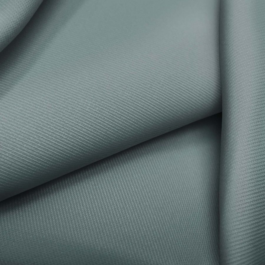 La tela base es Sarga - Prada, un tejido de sarga compuesto por 96% poliéster y 4% elastano con un gramaje de 220 gr/m2 y ancho de 150 cm. El color liso impreso es una combinación de verde y verde musgo azul con un contenido del CMYK de 60 38 42 21. Este color secundario tiene un tono terroso y natural que evoca la naturaleza. Se combina bien con tonos neutros como el beige y el gris, así como con tonos más intensos como el azul marino y el burdeos.