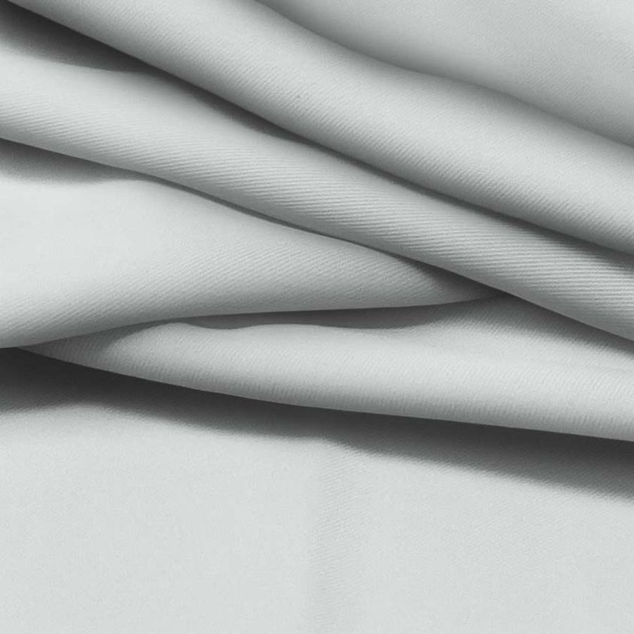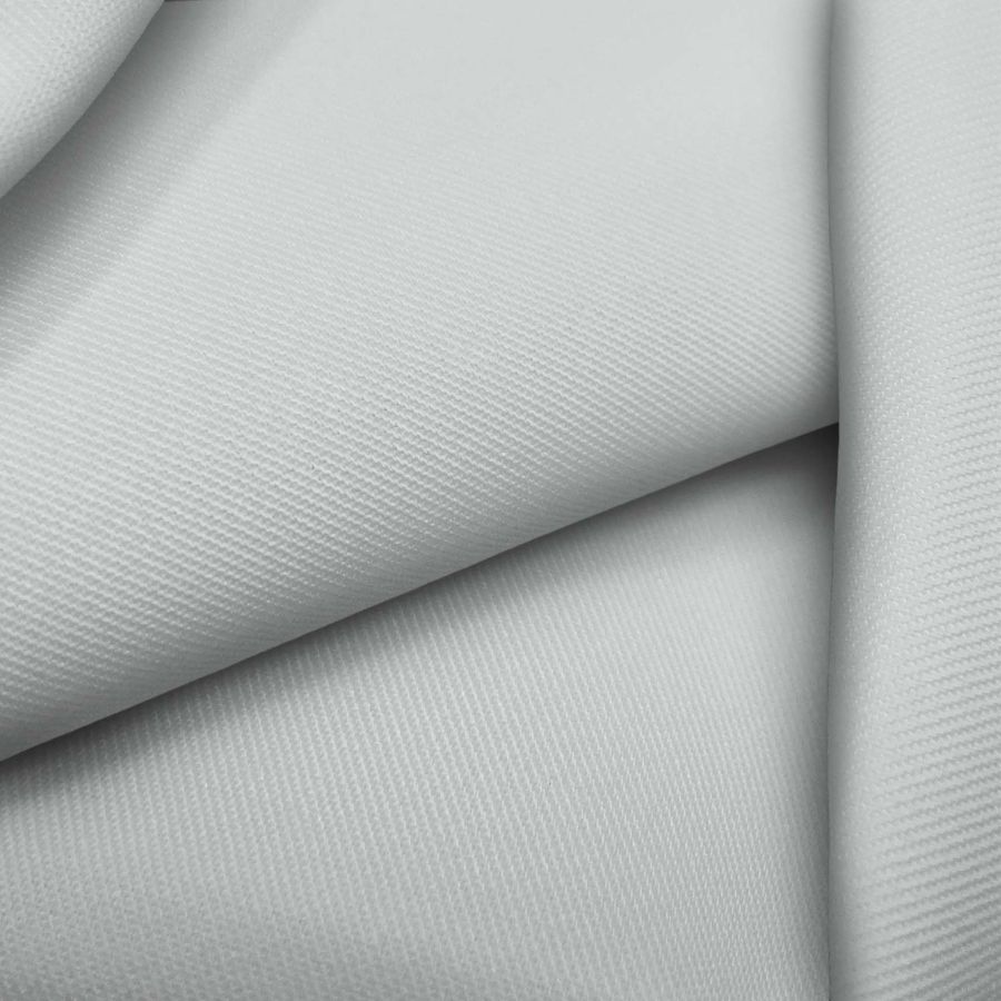 La tela base es una Sarga - Prada, compuesta de un 96% de poliéster y un 4% de elastano. El color de la tela es Gris Platino, identificado por el valor CMYK 15 7 12 0. Este color se caracteriza por su sutileza y elegancia y se complementa con otros colores fríos como el negro, azul, gris oscuro y blanco. La tela está impresa con el color liso a una sola cara mediante impresión digital textil. La tela base es suave al tacto y de textura delgada, con un gramaje de 220 gr/m2 y ancho de 150 cm.