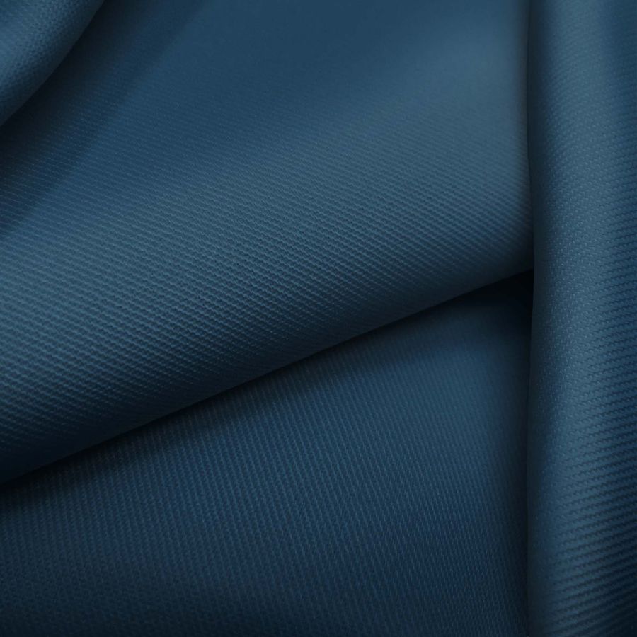 La tela base, Sarga - Prada, es una sarga con una composición de 96% POLIÉSTER y 4% ELASTANO con un gramaje de 220 gr/m2 y un ancho de 150 cm. El color liso impreso es un profundo azul marino con un contenido de CMYK de 99 73 45 46. Este color refleja profundidad y sofisticación, y combina particularmente bien con tonos neutros como el beige y el gris. Cabe destacar que la tela está impresa con el color liso a una sola cara por impresión digital textil, lo que significa que no es un tejido tintado, sino impreso por una sola cara.