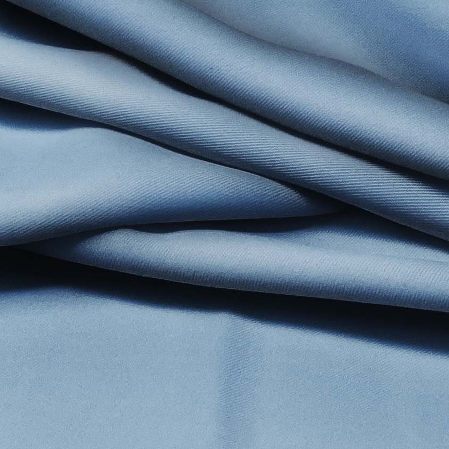 La tela base de este tejido es una sarga de poliéster y elastano de 220 gr/m2, con un ancho de 150 cm y un cuidado muy específico para mantener su calidad a lo largo del tiempo. El color liso impreso en este tejido es un azul SteelBlue, con un CMYK de 68 44 26 9 que le confiere una tonalidad clara y suave, muy adecuada para la moda de verano.