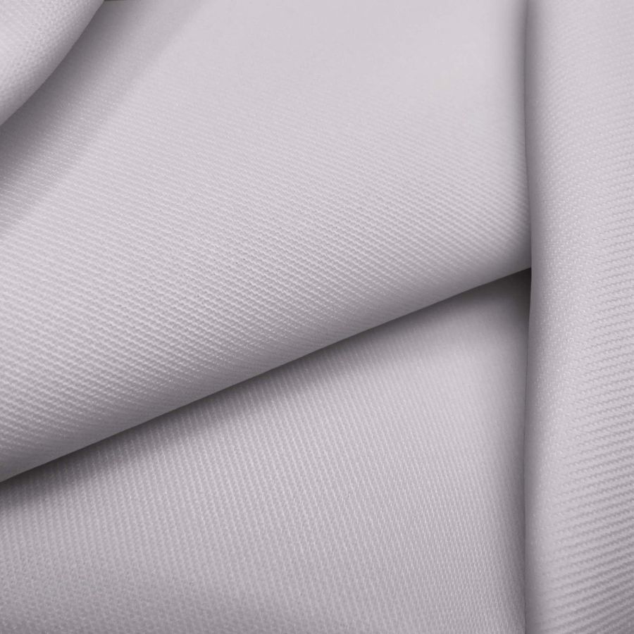La tela base Sarga - Prada de 96% POLIÉSTER y 4% ELASTANO, con un gramaje de 220 gr/m2 y un ancho de 150 cm, presenta un color liso impreso de Morado Lavanda Pinocho con un CMYK de 13 16 9 0. Este color se caracteriza por su suavidad, delicadeza y elegancia, asociándose con la sinceridad, la pureza y la tranquilidad. Se combina en particular con tonos neutros como el blanco, el gris y el beige, así como con otros tonos pastel como el rosa y el celeste.