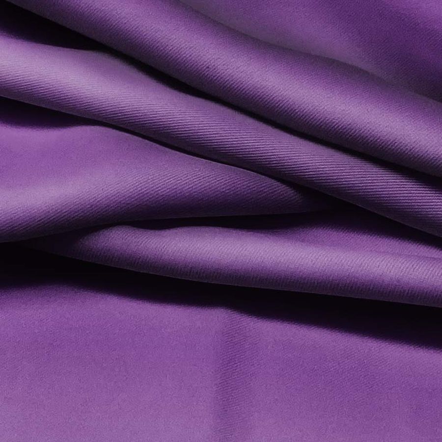 La tela base es una sarga de poliéster y elastano de 220 gr/m2, suave al tacto y con una textura delgada. El color liso impreso es un Morado Mermelada Púrpura con un CMYK de 76 92 26 16. El color es rico en tonalidad, profundo y vibrante, evocando una sensación de misterio y sofisticación. El color púrpura es una combinación de rojo y azul, lo que lo hace versátil para combinarse con tonos cálidos y fríos, desde rosa, rojo, naranja, amarillo, verde y azul.