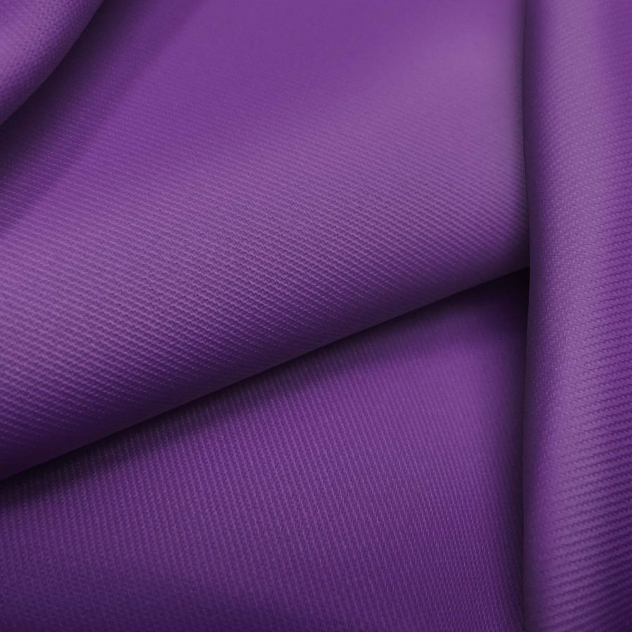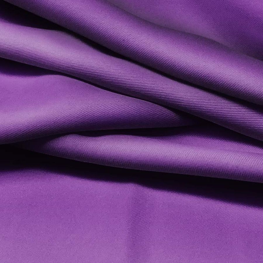 La tela base es una sarga Prada compuesta por un 96% de poliéster y un 4% de elastano, con un gramaje de 220 gr/m2 y un ancho de 150 cm. El color liso impreso en la tela es un morado irisado, con una mezcla de tintas Cyan (75), Magenta (94), Yellow (15) y Black (5) en el modelo CMYK (75 94 15 5). Este color secundario tiene una cualidad sobresaliente que lo hace altamente atractivo: su capacidad para cambiar de tonalidad según la luz y el ángulo desde donde se mire. Es, por lo tanto, un color dinámico y versátil. En cuanto a la combinación de colores, este morado irisado se adapta bien a otros tonos pastel como el rosa claro, el azul cielo y el verde menta.