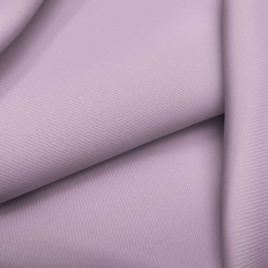 La tela base es una sarga de Prada con una composición de 96% poliéster y 4% elastano, con un gramaje de 220 gr/m2 y un ancho de 150 cm. El color liso impreso es un cardo morado, con una tinta cyan de 16, magenta de 35, yellow de 4 y black de 0, por lo que el CMYK es 16 35 4 0. Este color secundario es un tono vibrante y brillante que transmite creatividad y originalidad. Se combina bien con colores como rosas, azules y turquesas, que resaltan su efecto visual.