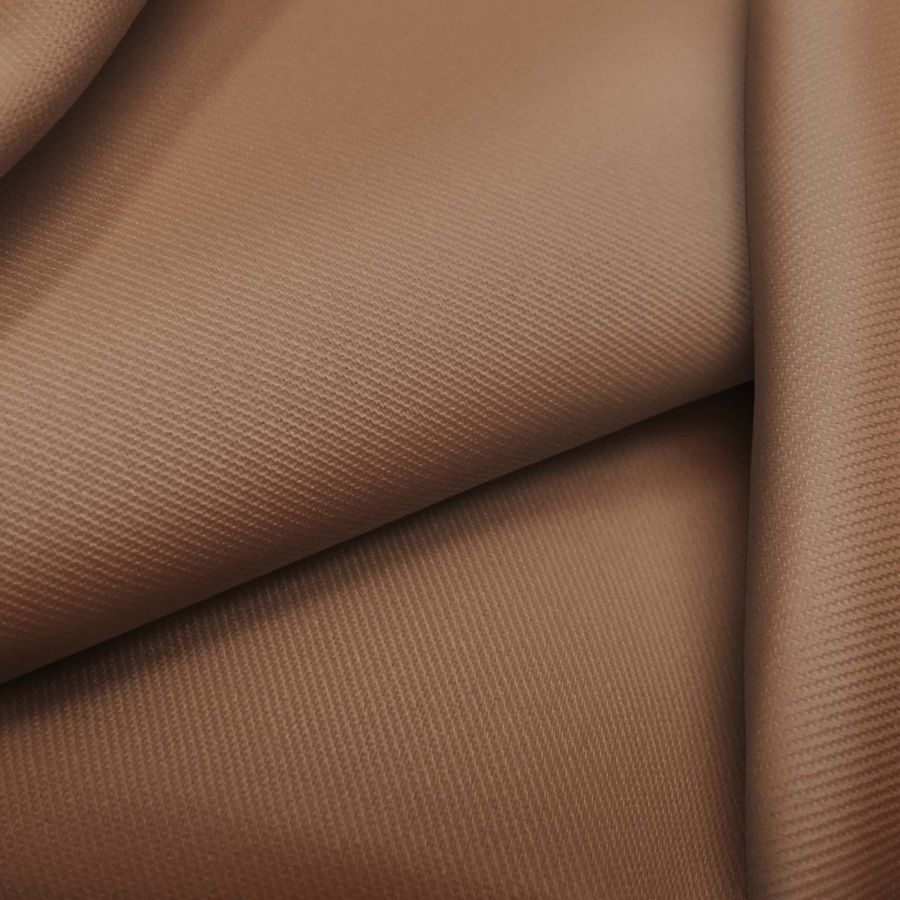 La tela base es la Sarga - Prada, compuesta por 96% de poliéster y 4% de elastano, con un gramaje de 220 gr/m2 y un ancho de 150 cm. El color liso impreso es Marrón Oso Café, con un CMYK de 35 55 66 37, lo que indica una predominancia de magenta y amarillo en el color. Este color se combina muy bien con tonos tierra, como marrones oscuros, al igual que con azules oscuros. La tela está impresa con este color liso a una sola cara por impresión digital textil, lo que proporciona un acabado vívido y duradero.