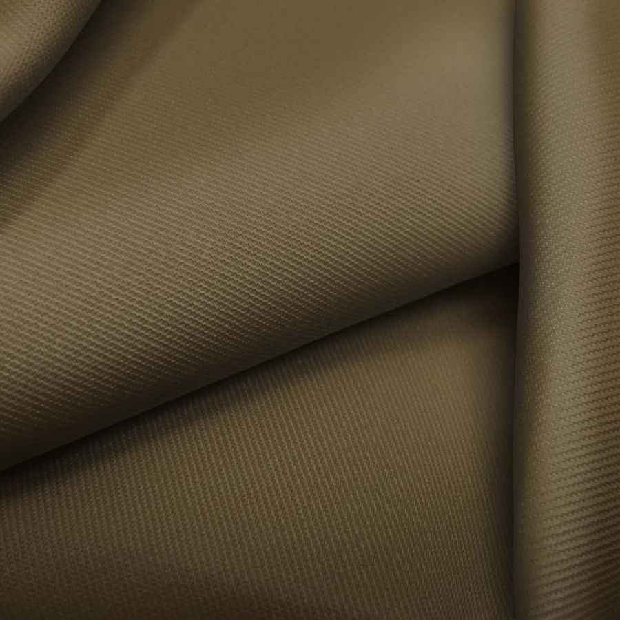 La tela base es una sarga de poliéster-elastano de 220 gr/m2, de 150 cm de ancho y lavable a 30ºC. El color liso impreso en esta tela es un marrón-moca con un CMYK de 52 53 80 54. Este color es una combinación de tonos cálidos que sugieren la elegancia y la sofisticación, siendo perfecto para prendas de alta gama. Además, el color se combina perfectamente con otros tonos neutros como grises, blancos y negros.