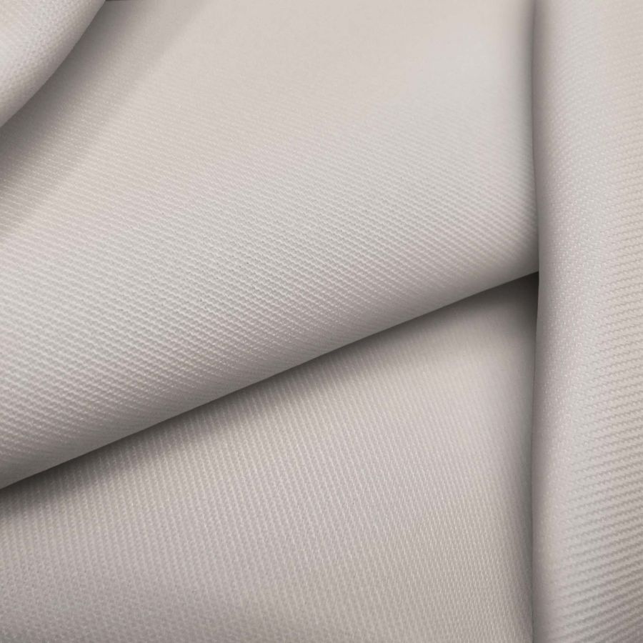 La tela base de esta prenda es Sarga - Prada, una tela de sarga compuesta por un 96% de poliéster y un 4% de elastano, con un gramaje de 220 gr/m2 y un ancho de 150 cm. El color liso impreso es crudo y plata pálida con un CMYK de 12 16 18 0. En cuanto al color secundario, el plata pálida es un tono elegante y sofisticado que combina muy bien con otros tonos más oscuros como el negro, azul marino o gris, así como con tonos más fríos y vibrantes como el azul celeste o verde menta.