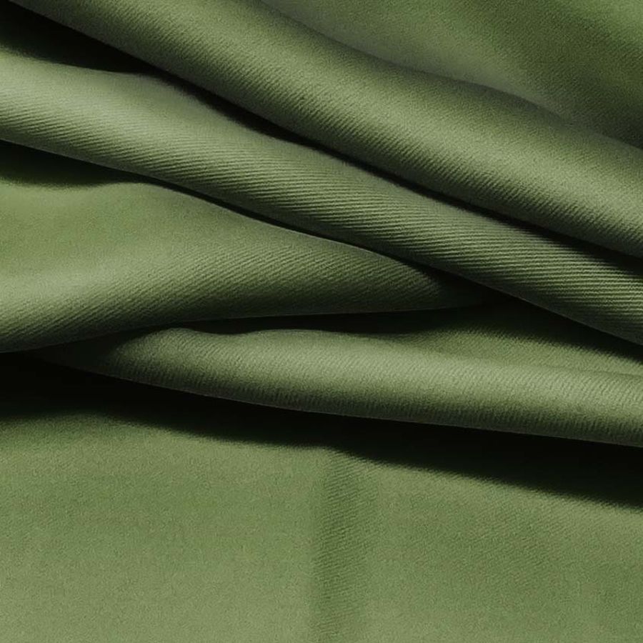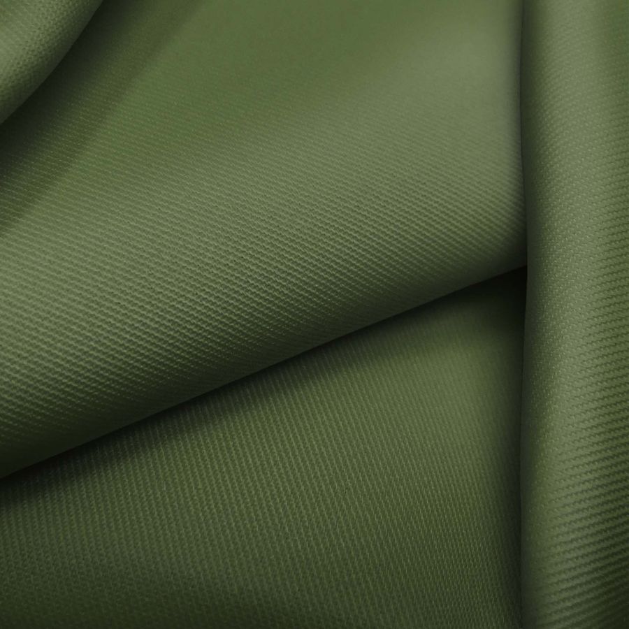 La tela base es sarga Prada, una sarga compuesta en un 96% de poliéster y un 4% de elastano, con un gramaje de 220 gr/m2 y un ancho de 150 cm. El color liso impreso es un verde bosque oscuro, con un CMYK de 69 45 85 45. Este color evoca la naturaleza, la frescura y el equilibrio entre lo orgánico y lo sintético. Combina especialmente bien con colores claros como el blanco o el crema, y con otros tonos de verde o marrón que hagan referencia a la naturaleza.