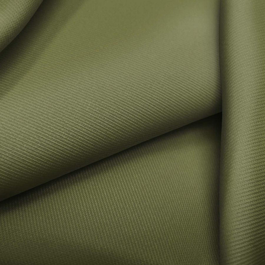 La tela base es Sarga - Prada, una sarga compuesta por 96% poliéster y 4% elastano, con un gramaje de 220 gr/m2 y un ancho de 150 cm. El color liso impreso es Verde Bronce Antiguo, con una combinación CMYK de 59 43 81 37. Este color simboliza la naturaleza y la elegancia, con una mezcla de tonos verdes y dorados que evocan la majestuosidad de un bosque en otoño. El color secundario combina bien con tonos marrones, ocres, naranjas y amarillos, creando una armonía cálida y acogedora.