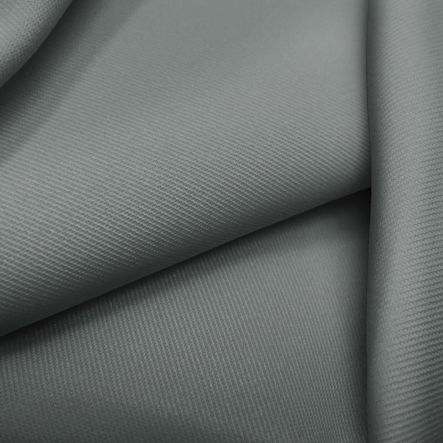 La tela base es una Sarga Prada, compuesta por un 96% de poliéster y un 4% de elastano, con un gramaje de 220 gr/m2 y un ancho de 150 cm. El color liso impreso es Gris Hierro, con un CMYK de 57 42 45 28. Este color es un tono neutro con un matiz grisáceo oscuro, que simboliza la estabilidad y la elegancia. El Gris Hierro combina bien con otros tonos grises, negros, blancos y algunos tonos de color marrón.