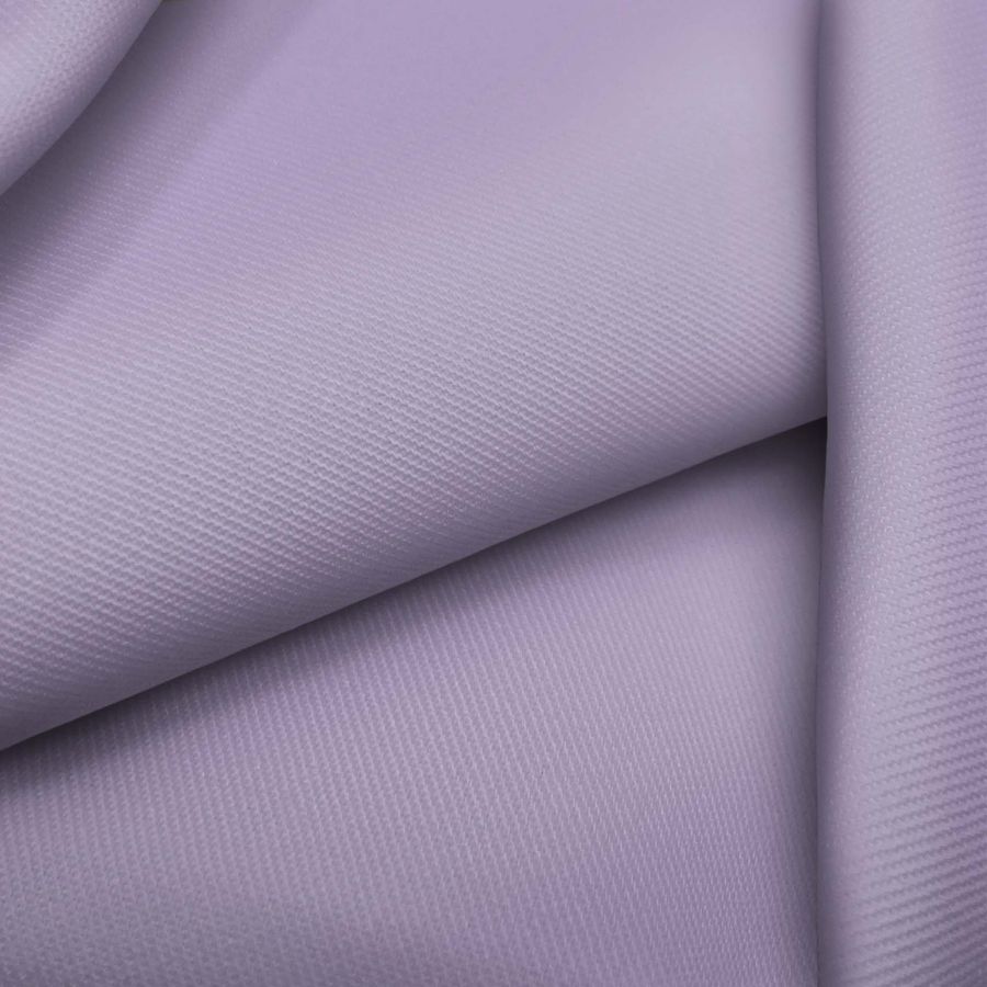 La tela base de esta prenda es una sarga de poliéster con un gramaje de 220 gr/m2 y un ancho de 150 cm. El color liso impreso es un morado púrpura medio con los siguientes porcentajes de tintas: Cyan 35, Magenta 40, Yellow 5, Black 0, lo que da como resultado un CMYK de 35 40 5 0. Este color secundario combina especialmente bien con tonos neutros como el blanco, el gris y el negro, aportando un toque de vivacidad y elegancia.