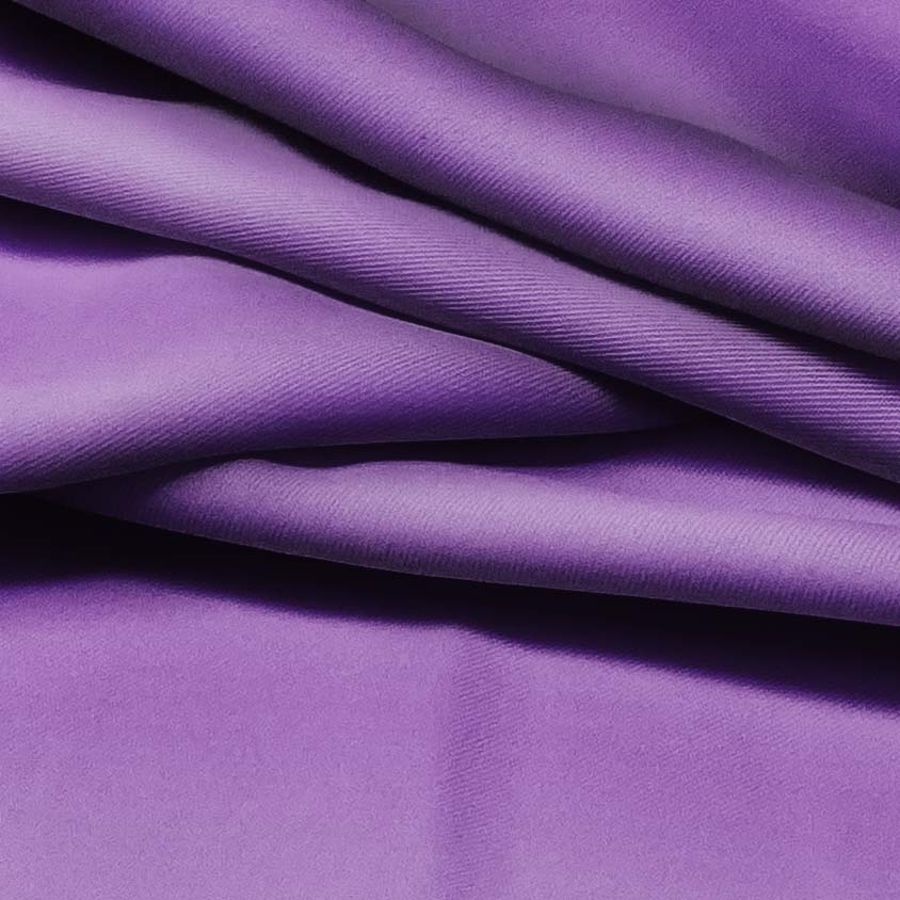 La tela base es la Sarga-Prada, una suave y delicada tela de sarga compuesta principalmente de 96% POLIÉSTER y 4% ELASTANO. Su color liso es un intenso morado iris que se logra con una combinación de tintas de cyan (66), magenta (80) y yellow (6) en el proceso de impresión digital textil. Este color secundario tiene una gran profundidad y brillo que lo hacen ideal para prendas de moda femenina. El morado iris, por su tonalidad fría y a la vez vibrante, combina con éxito con tonos fríos como el gris, beige e incluso tonos rosa y lavanda.