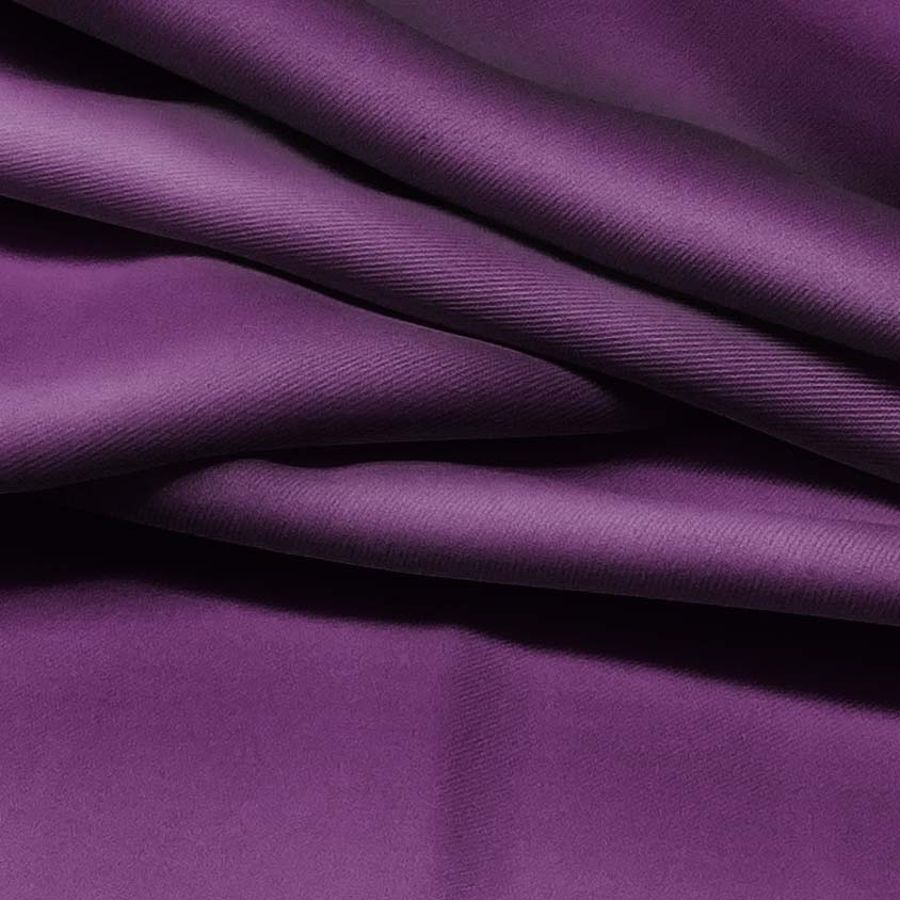 La tela base es la Sarga - Prada, compuesta por 96% de poliéster y 4% de elastano, con un gramaje de 220 gr/m2 y un ancho de 150 cm. El color liso impreso en esta tela es morado oscuro, con una composición de CMYK de 77 100 35 44. Este color simboliza la elegancia y es perfecto para un look sofisticado, combinando bien con tonalidades de grises, blancos y tonos dorados. Es importante destacar que el tejido está impreso con color liso a una sola cara por impresión digital textil, lo que proporciona una nitidez y precisión excepcionales en la reproducción del color.