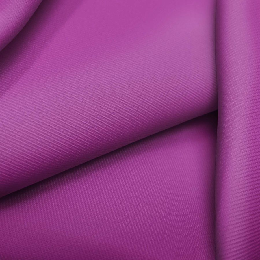 La tela base es una sarga-Prada compuesta por un 96% de poliéster y un 4% de elastano, con un gramaje de 220 gr/m2 y un ancho de 150 cm. El color liso impreso es una combinación de morado y DarkMagenta, con una tinta Cyan de 46, Magenta de 88, Yellow de 2 y Black de 0, resultando en un CMYK de 46 88 2 0. Este color tiene un carácter distintivo y altamente simbólico, representando la creatividad y la nobleza. Combinado con otros colores, el morado y DarkMagenta pueden crear una sensación de misterio y sofisticación, como con grises oscuros, negros y tonos mostaza.