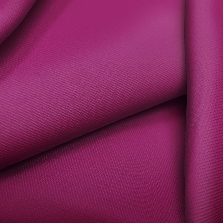 La tela base de este tejido es la sarga, específicamente la Sarga - Prada, compuesta por un 96% de poliéster y un 4% de elastano, con un gramaje de 220 gr/m² y una anchura de 150 cm. El color liso impreso en esta tela es una mezcla de tonos morado y DarkMagenta, con una tinta Cyan del 40%, una Magenta del 100%, una Yellow del 26% y una Black del 25%, lo que se traduce en un valor CMYK de 40 100 26 25. Este color secundario presenta un tono vibrante y llamativo, que puede simbolizar la pasión, la sensualidad y la elegancia. Su combinación con otros colores puede ser diversa, aunque especialmente destaca con tonos neutros como el blanco, el negro y el gris.