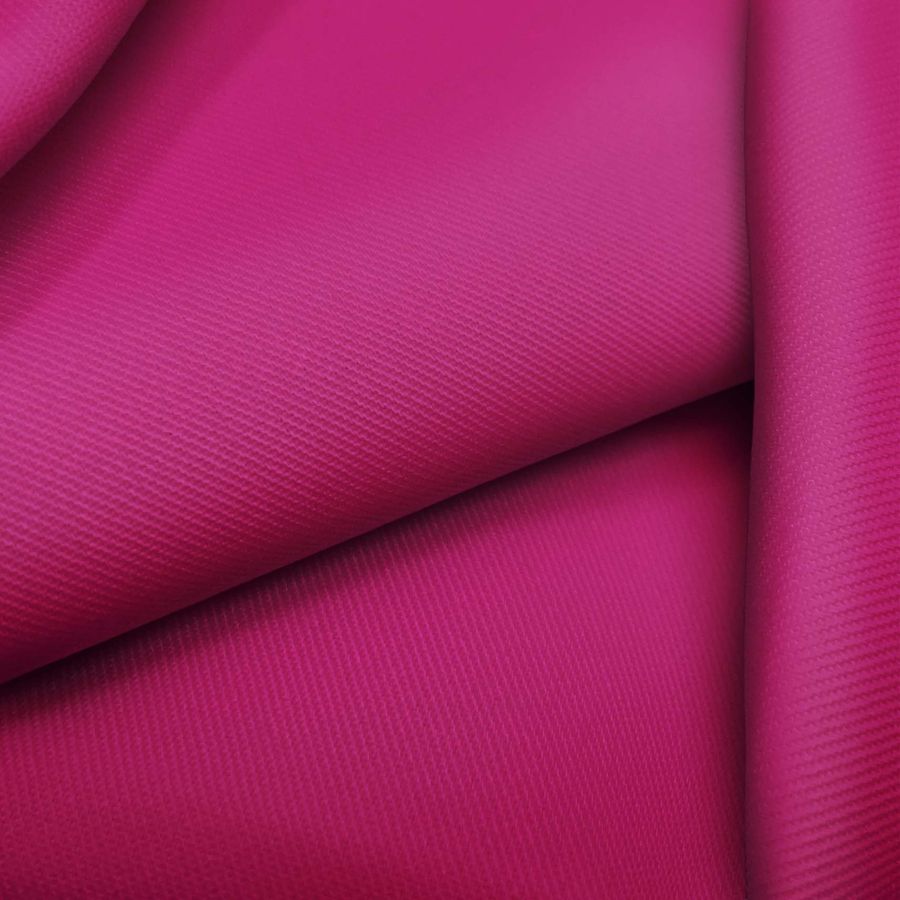 La tela base es una Sarga - Prada de 220 gr/m2 compuesta por un 96% de poliéster y un 4% de elastano, con un ancho de 150 cm. El color liso impreso en la tela es de tonalidades rosa y rosa quemado, con un CMYK de 24 100 29 13. Este color transmite calidez, feminidad y sofisticación, combinando perfectamente con colores neutros como el blanco, gris y negro, así como con tonalidades terracota y dorado.