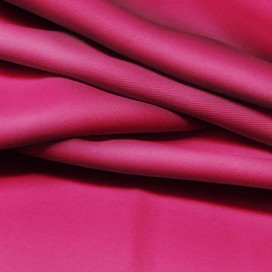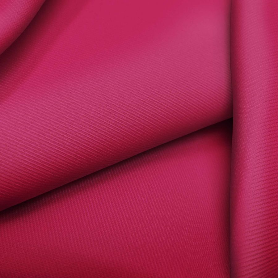 La tela base es una sarga de poliéster y elastano de 220 gr/m2, con un ancho de 150 cm y un color liso impreso en rosa y rosa rojo. De acuerdo con el CMYK proporcionado, el color secundario es un rosa fucsia intenso con un tono cálido y vibrante. El rosa fucsia combina particularmente bien con tonos blancos, negros y grises, así como con colores más brillantes como el turquesa, amarillo, verde lima o naranja.