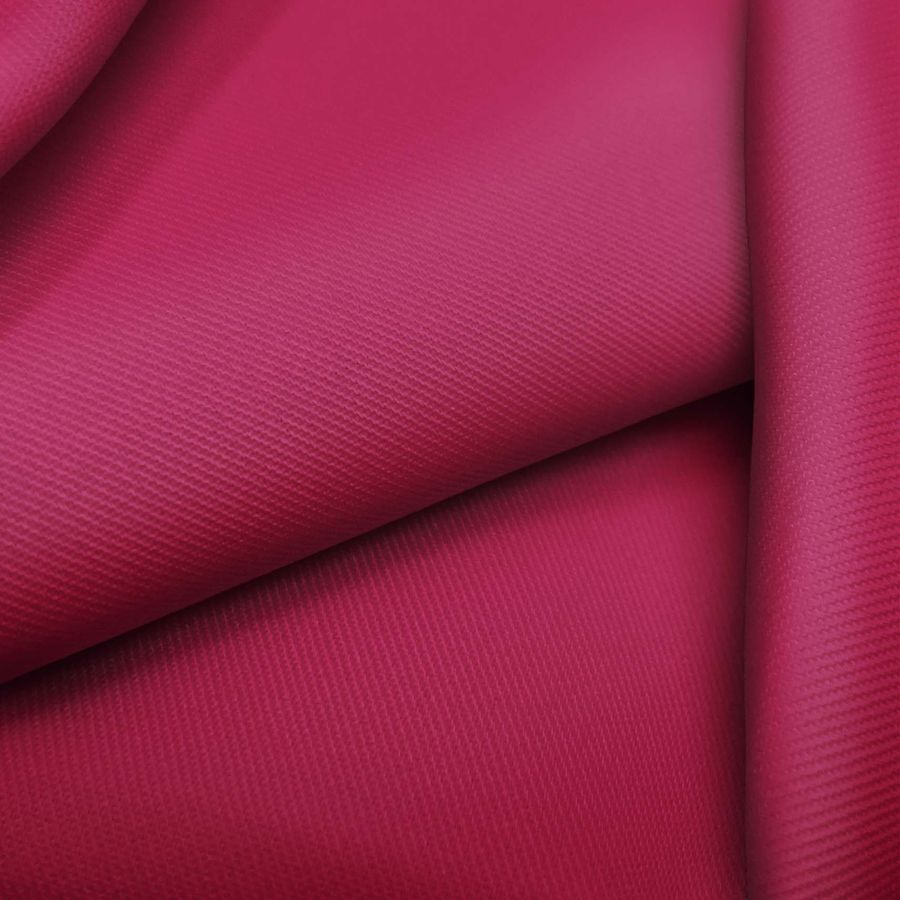 La tela base es Sarga - Prada, compuesta por un 96% de poliéster y un 4% de elastano, con un gramaje de 220 gr/m2 y un ancho de 150 cm. El color liso impreso en la tela es rojo-rosa roja, con una combinación de tintas de cian (24), magenta (100), yellow (50) y black (21) con un valor CMYK de 24 100 50 21. El color secundario es intenso y vibrante, reflejando una pasión ardiente y un espíritu cálido. El rojo-rosa roja combina perfectamente con tonos neutros, como el blanco y el gris, así como con otros colores como el negro y el azul. La tela base está impresa con el color liso a una sola cara por impresión digital textil, lo que garantiza una calidad de imagen nítida y duradera.