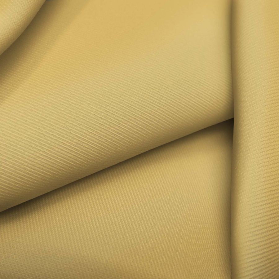 La tela base de este tejido es la sarga Prada, compuesta por un 96% de poliéster y un 4% de elastano, con un gramaje de 220 gr/m2 y un ancho de 150 cm. El color liso impreso es naranja claro, con un CMYK de 9 25 65 1, lo que le confiere una tonalidad brillante y luminosa. Este color secundario combina perfectamente con tonos terrosos y marrones, así como con verdes y turquesas.