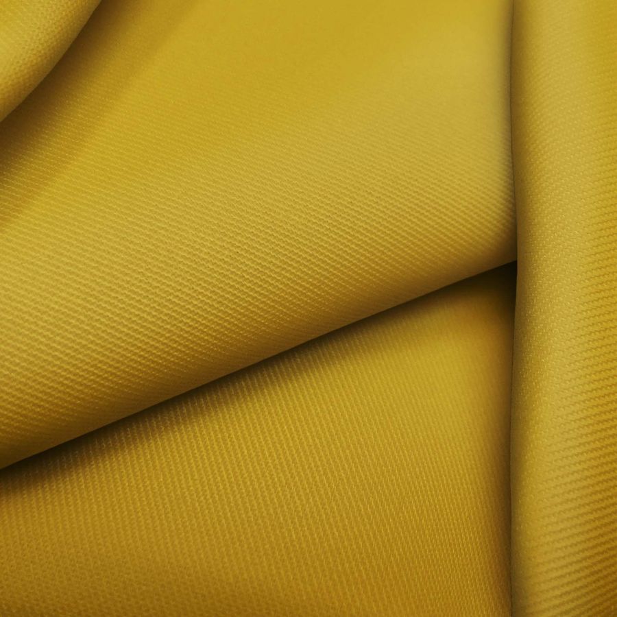 La tela base de este tejido es una sarga de poliéster con un 4% de elastano, lo que le proporciona una gran resistencia y elasticidad. Tiene un gramaje de 220 gr/m2 y un ancho de 150 cm. En cuanto al color liso impreso, se trata de una mezcla de marrón y DarkGoldenRod, cuyo contenido de tinta en CMYK es de 24 39 100 13. Este color secundario es ideal para crear prendas de moda elegantes y sofisticadas, y combina especialmente bien con tonos neutros como el negro, el gris o el blanco.