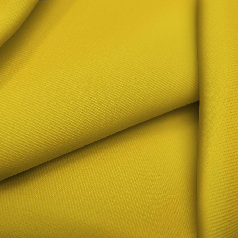 La tela base es la Sarga-Prada, compuesta por un 96% de poliéster y un 4% de elastano, con un peso por metro cuadrado de 220 gramos y un ancho de 150 cm. El color liso impreso es un llamativo amarillo-oro naranja con una composición CMYK de 9 25 91 1. Este color se caracteriza por su luminosidad y aporta un toque cálido y alegre a las prendas que se confeccionen con él. Este color combina especialmente bien con tonos neutros como el blanco, gris claro, arena y beige. La tela es impresa con el color liso solo por una cara mediante impresión digital textil. La Sarga-Prada es una tela de textura suave y delgada, con buena caída y elasticidad. En cuanto al color liso, se trata de una tinta de gran resistencia al desgaste y al lavado, lo que garantiza una duración prolongada del color. La tela es adecuada para la confección de prendas de vestir de verano tanto para hombres como para mujeres, como faldas, blusas, vestidos, camisas y pañuelos. Además, se puede utilizar en accesorios como bolsas o fundas de móvil.