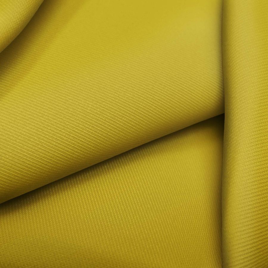 La tela base de Sarga-Prada es una sarga suave con una composición de 96% de poliéster y 4% de elastano y un gramaje de 220 gr/m2, con un ancho de 150 cm. El color liso impreso es amarillo olivo, reflejando un CMYK de 26 30 98 10. Este tono se caracteriza por ser fresco y natural, simbolizando la tranquilidad y la paz. Combina muy bien con tonos tierra, grises, beige y azules.